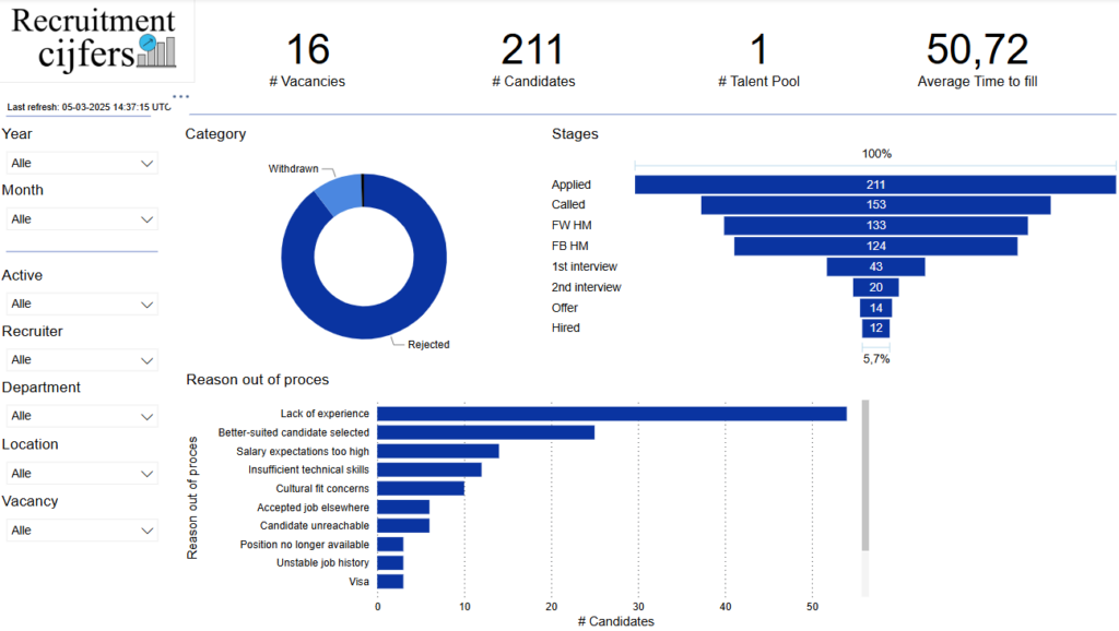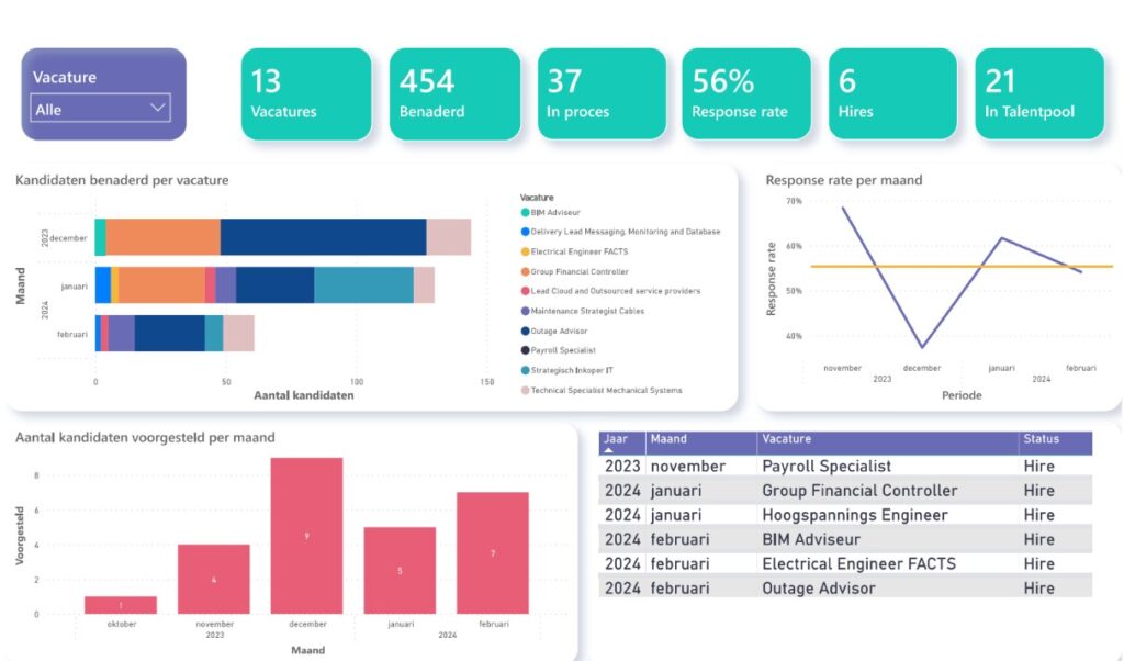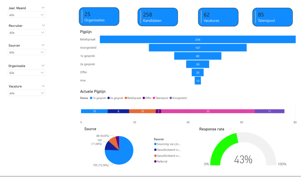 - Identificeren en verbeteren van knelpunten: Door inefficiënties te identificeren, kun je gerichte verbeteringen doorvoeren, waardoor je recruitmentprocessen gestroomlijnd en geoptimaliseerd worden.